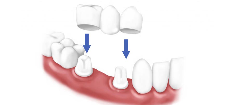 Η γέφυρα συνήθως καλύπτει δύο δόντια, ένα δόντι μπροστά και ένα δόντι πίσω από αυτό που λείπει. Αυτά χρησιμοποιούνται ως στηρίγματα για την τοποθέτησή της.