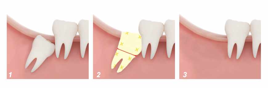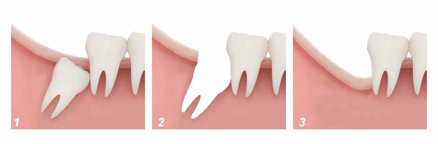 Μετά από τη χειρουργική αφαίρεση ενός φρονιμίτη (1) δημιουργείται ένας κενός χώρος ( 2 ) στο σημείου που βρισκόταν η ρίζα. Η φυσική επούλωση έχει σαν αποτέλεσμα να κλείσει ο κενός χώρος με κόκαλο και συνδετικό ιστό.